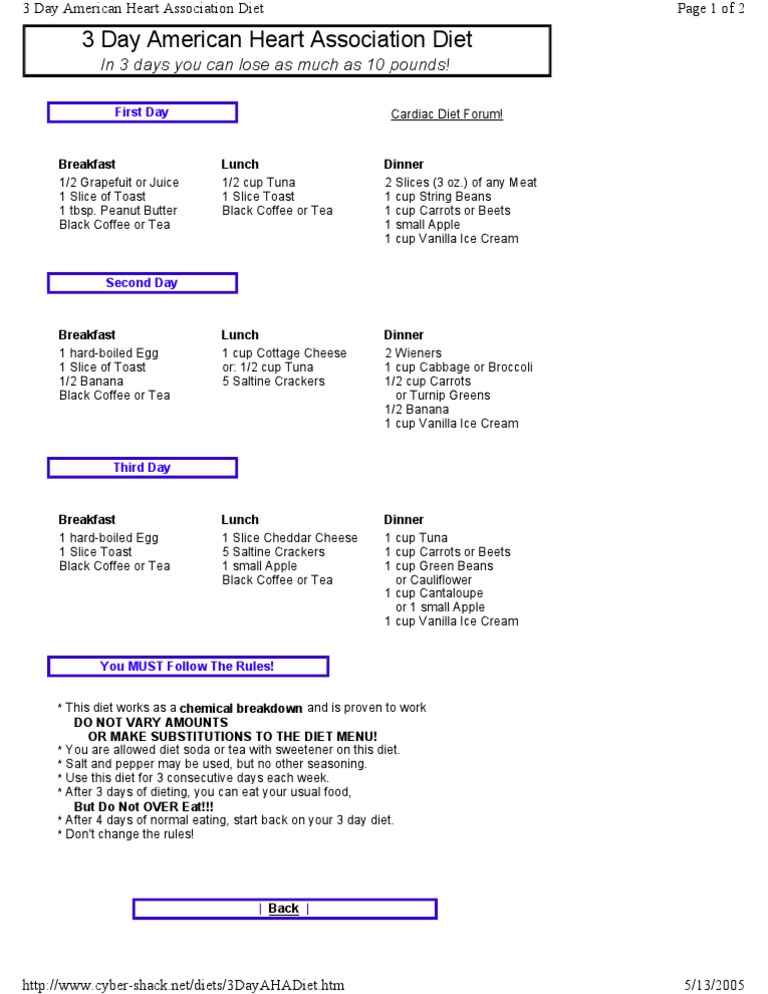 American Heart Associations Aha 3 Day Diet Dietwalls