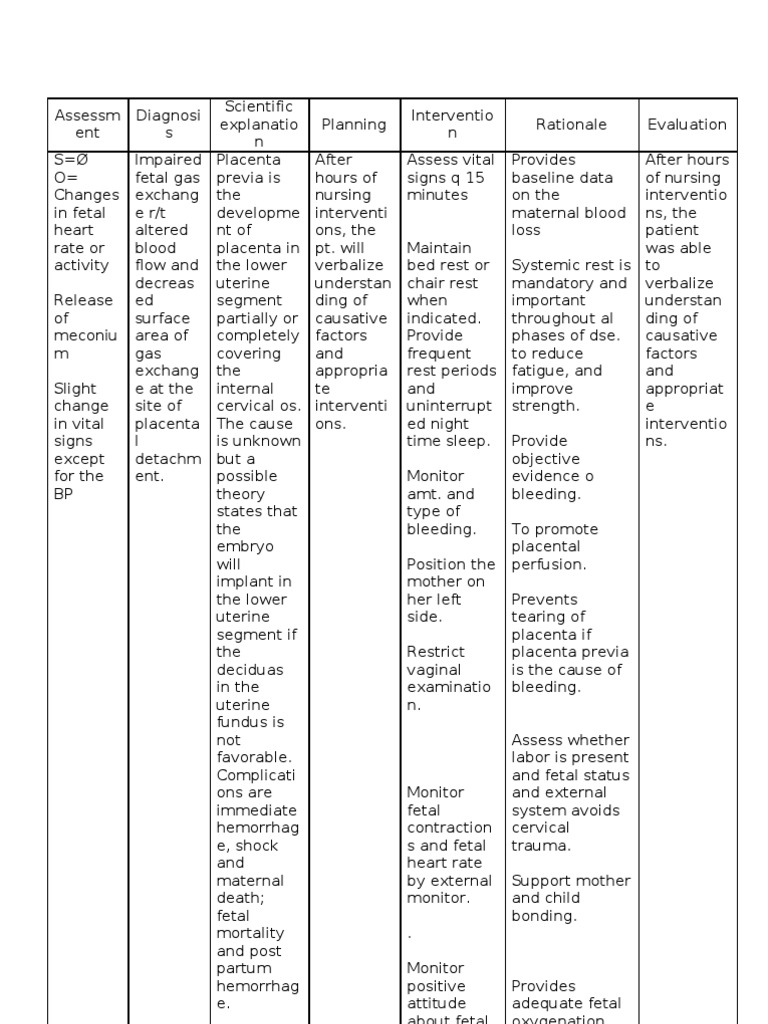 Nursing Care Plan Placenta Previa Pdf Nursing Crib